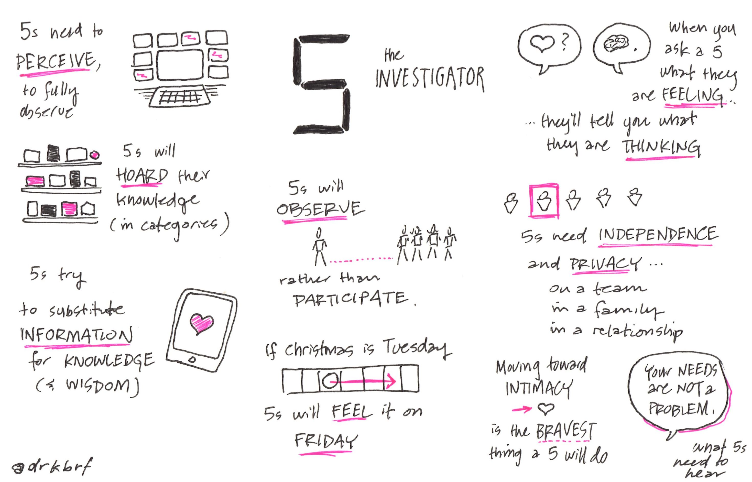 TYPE FIVE: THE INVESTIGATOR. Analytical, detached and private, they are motivated by a need to gain knowledge, conserve energy and avoid relying on others.